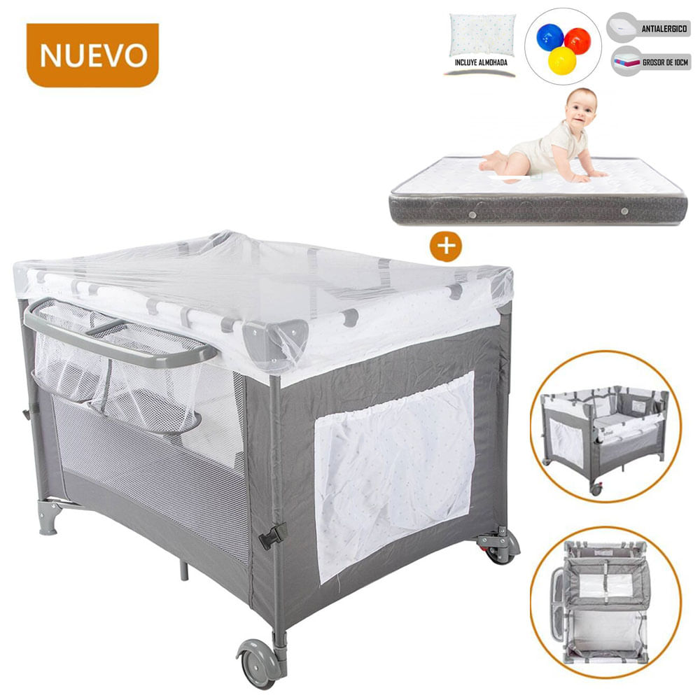Cuna Corral Always Together Infanti Marengo - Colchón Gris
