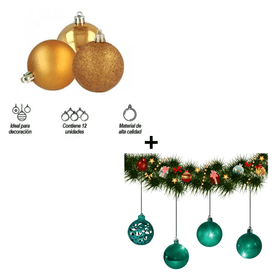 Combo Bolas Navideñas Color Dorado + Bolas Navideñas Color Verde