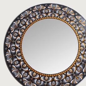 Espejo decorativo de pared Reya Mándala Gris y Dorado 50 cm