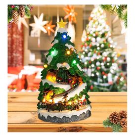 Villa Pueblo Navideño Árbol Tren y Carrusel Giratorio Musical Luz Led