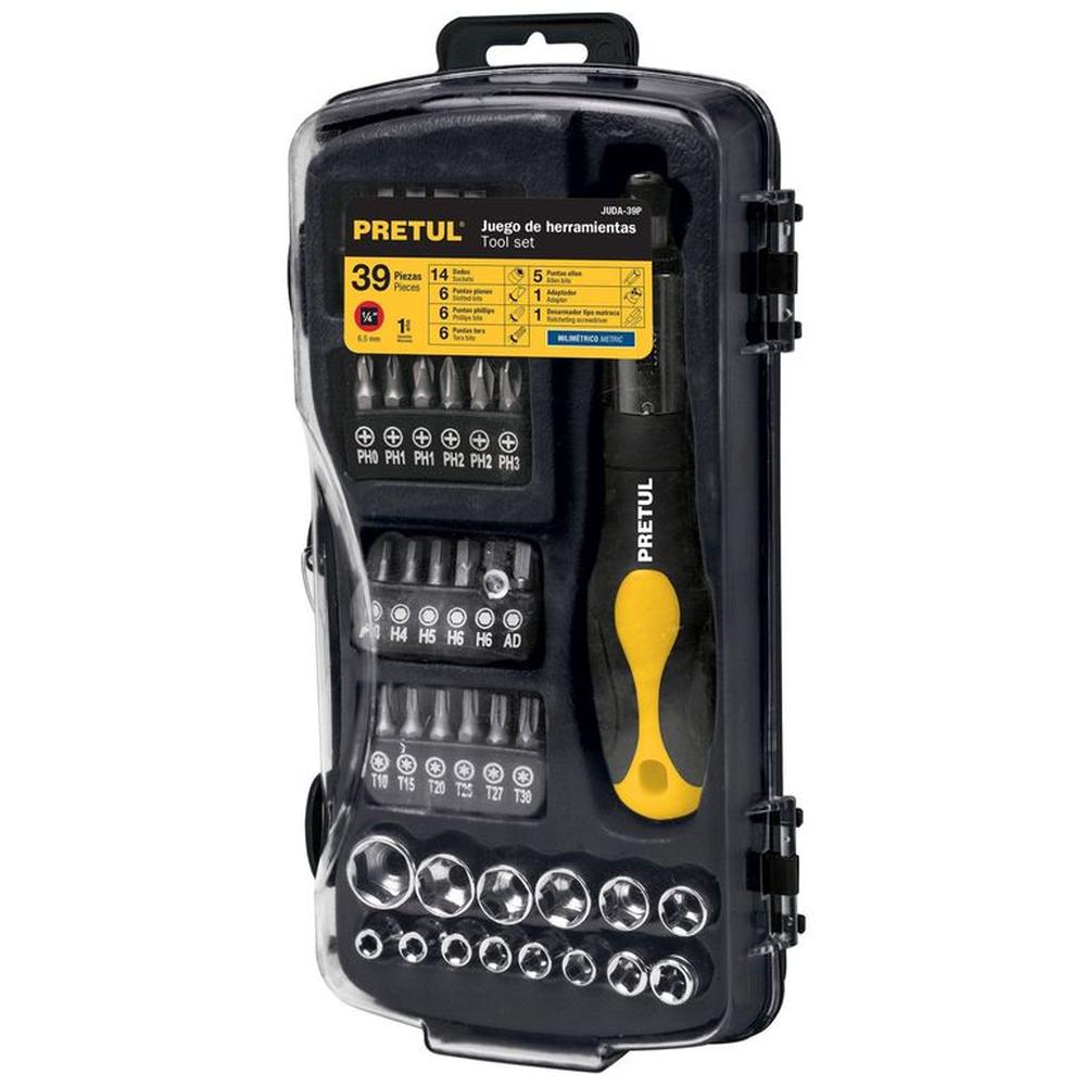 Dados y puntas para destornillar herramienta para mecánico 39 piezas Negro