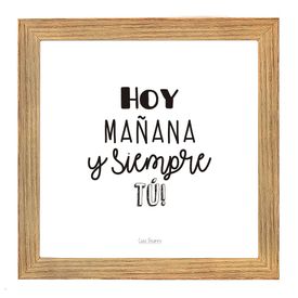 Cuadro con dedicatoria "Hoy mañana y siempre tú" hecho en madera por Casa Pizarro 17 x 17 cm