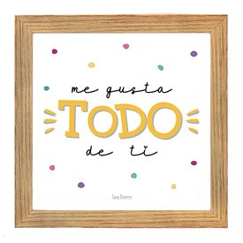 Cuadro con dedicatoria "Me gusta todo de ti" hecho en madera por Casa Pizarro 17 x 17 cm