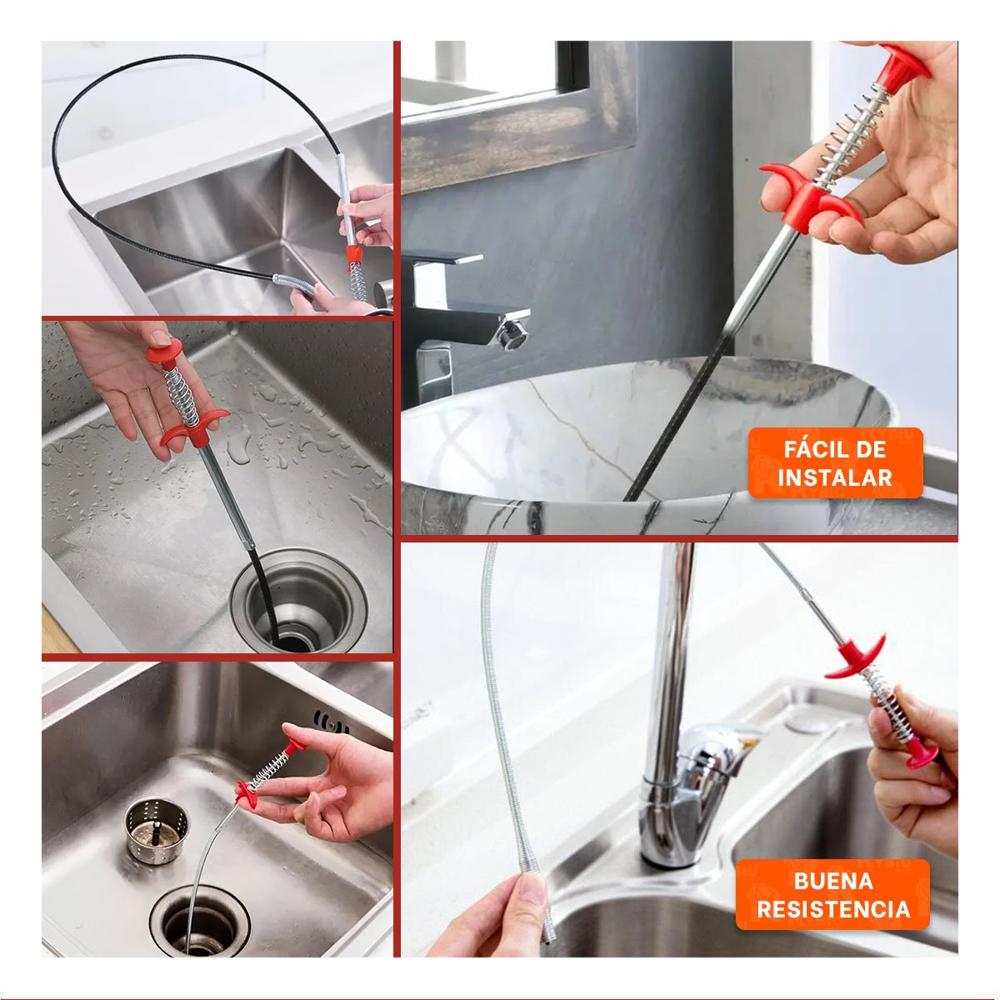 Destapador Tipo Gancho Flexible para Tuberias y Drenajes Color Negro Hogar