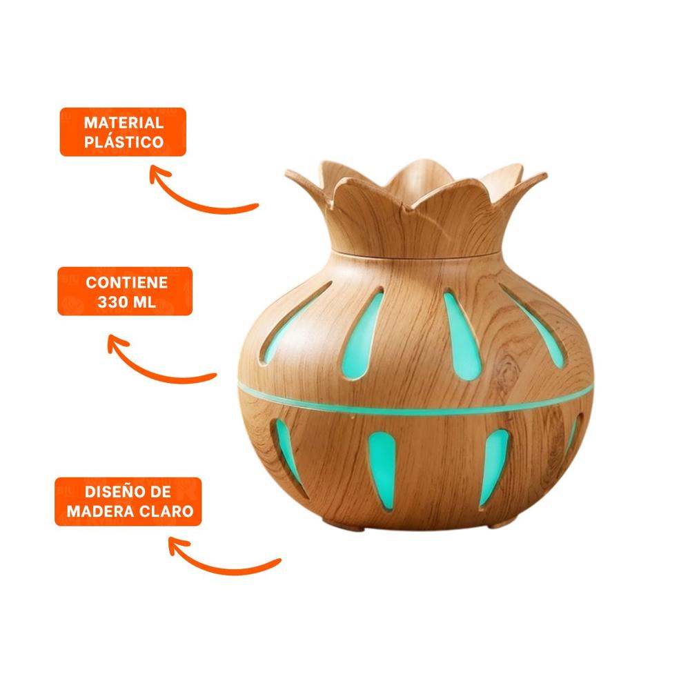 Difusor de Mesa con Funcion Humificadora Forma Floral 12x11cm Madera Claro Y+Ligas Regalo