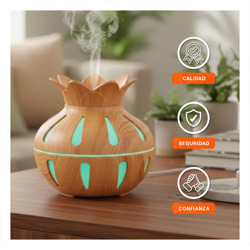 Difusor para Uso Interior 12x11cm Humificadora Forma Floral Madera Claro Y+Papel Regalo
