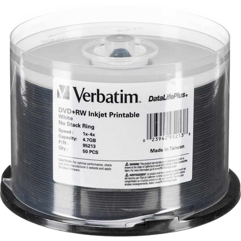 Discos Verbatim DVD+RW Regrabables 4.7GB 4x (50 Pk, Blanco, Impresionables por Inyección de Tinta, C - 419077-REG