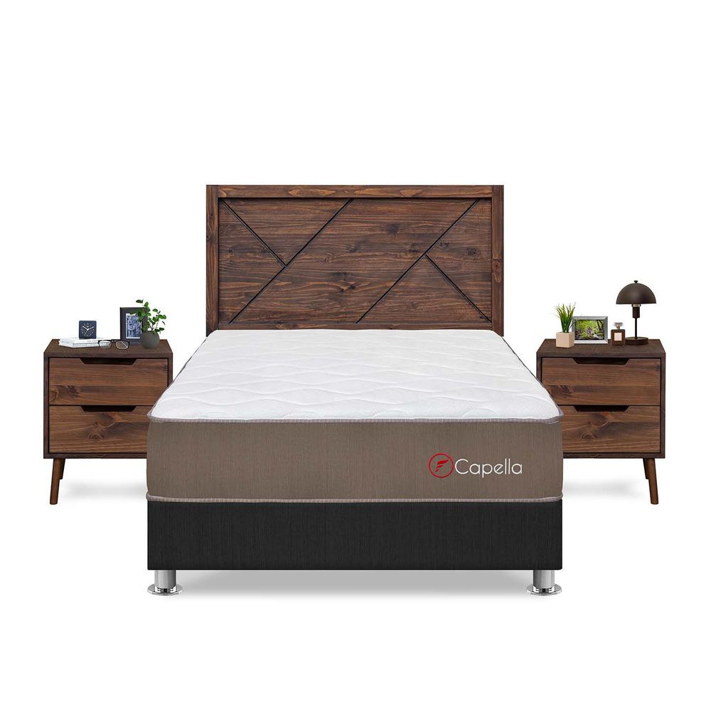 Dormitorio Capella 2 Plazas Gris + Velador Catania + Cabecera Florencia Nogal