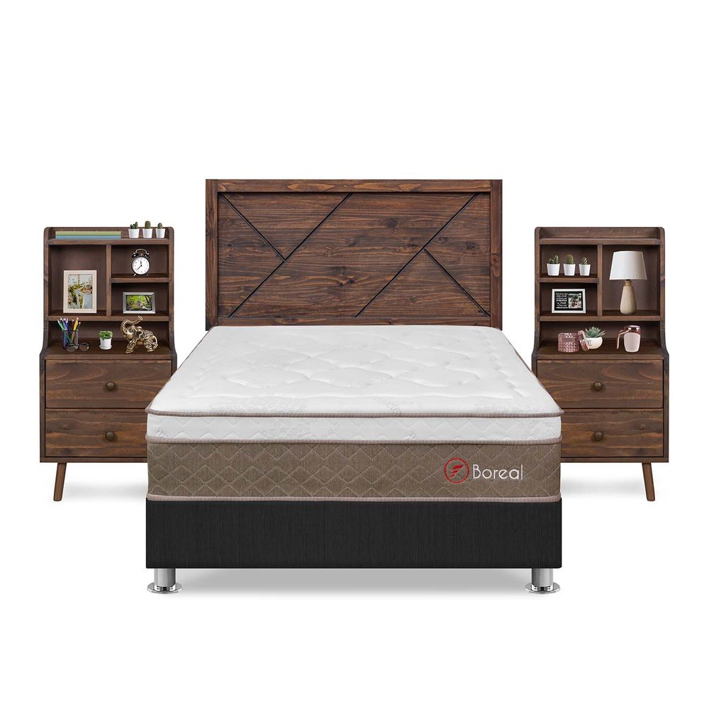 Dormitorio Boreal 2 Plazas Gris + Velador Fashion + Cabecera Florencia Nogal
