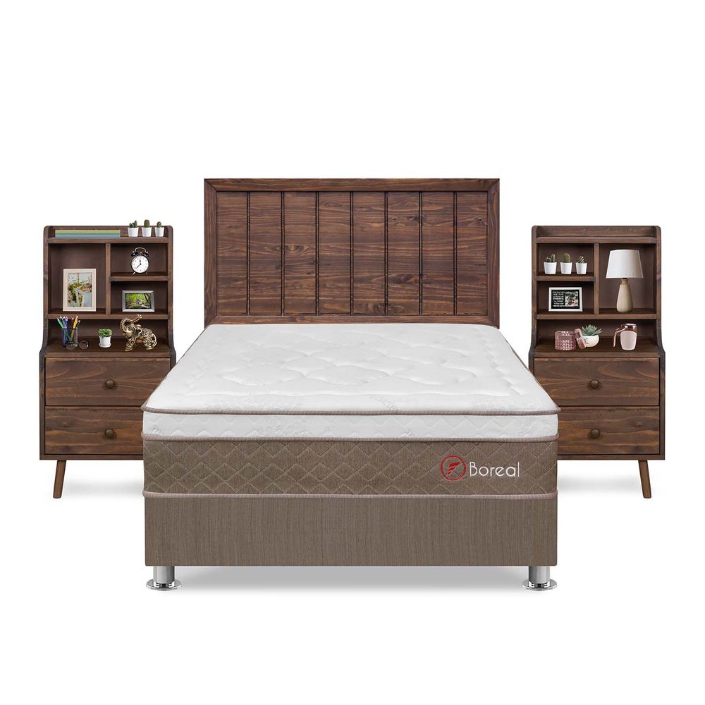 Dormitorio Boreal 2 Plazas Marron + Velador Fashion + Cabecera Catania Nogal