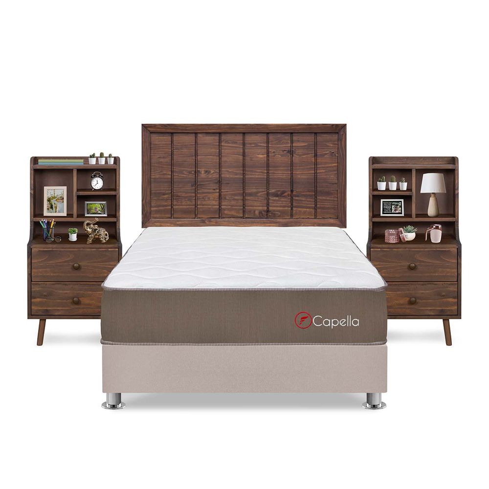 Dormitorio Capella 2 Plazas Beige + Velador Fashion + Cabecera Catania Nogal