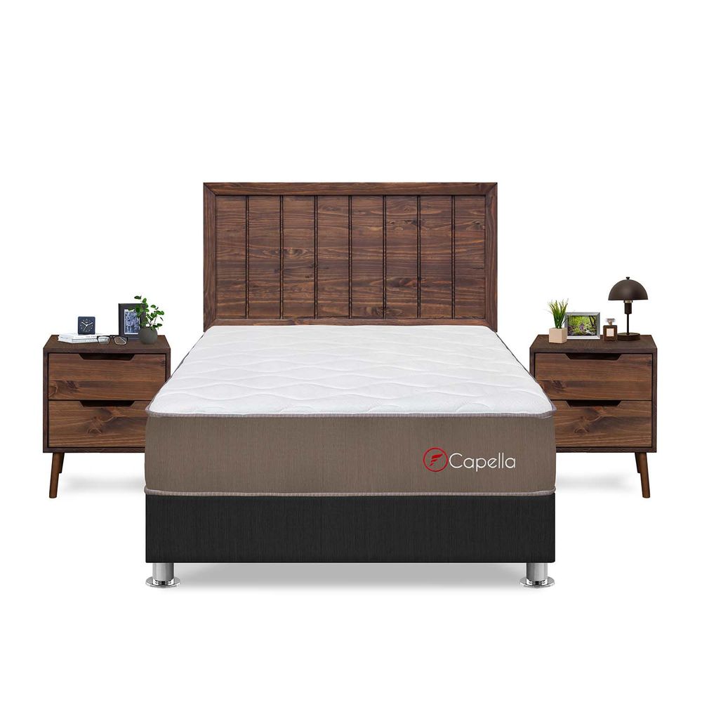 Dormitorio Capella 2 Plazas Gris + Velador Catania + Cabecera Catania Nogal