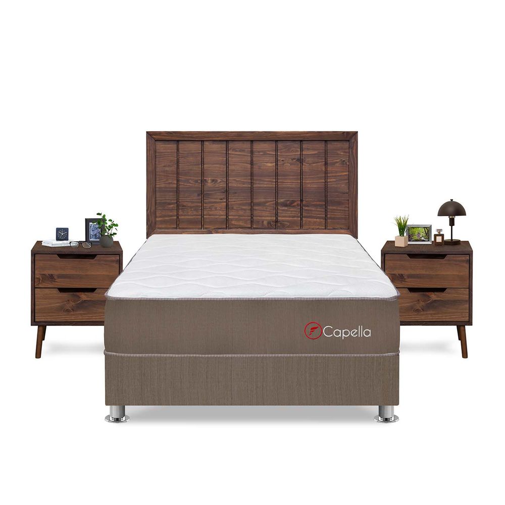Dormitorio Capella 2 Plazas Marron + Velador Catania + Cabecera Catania Nogal