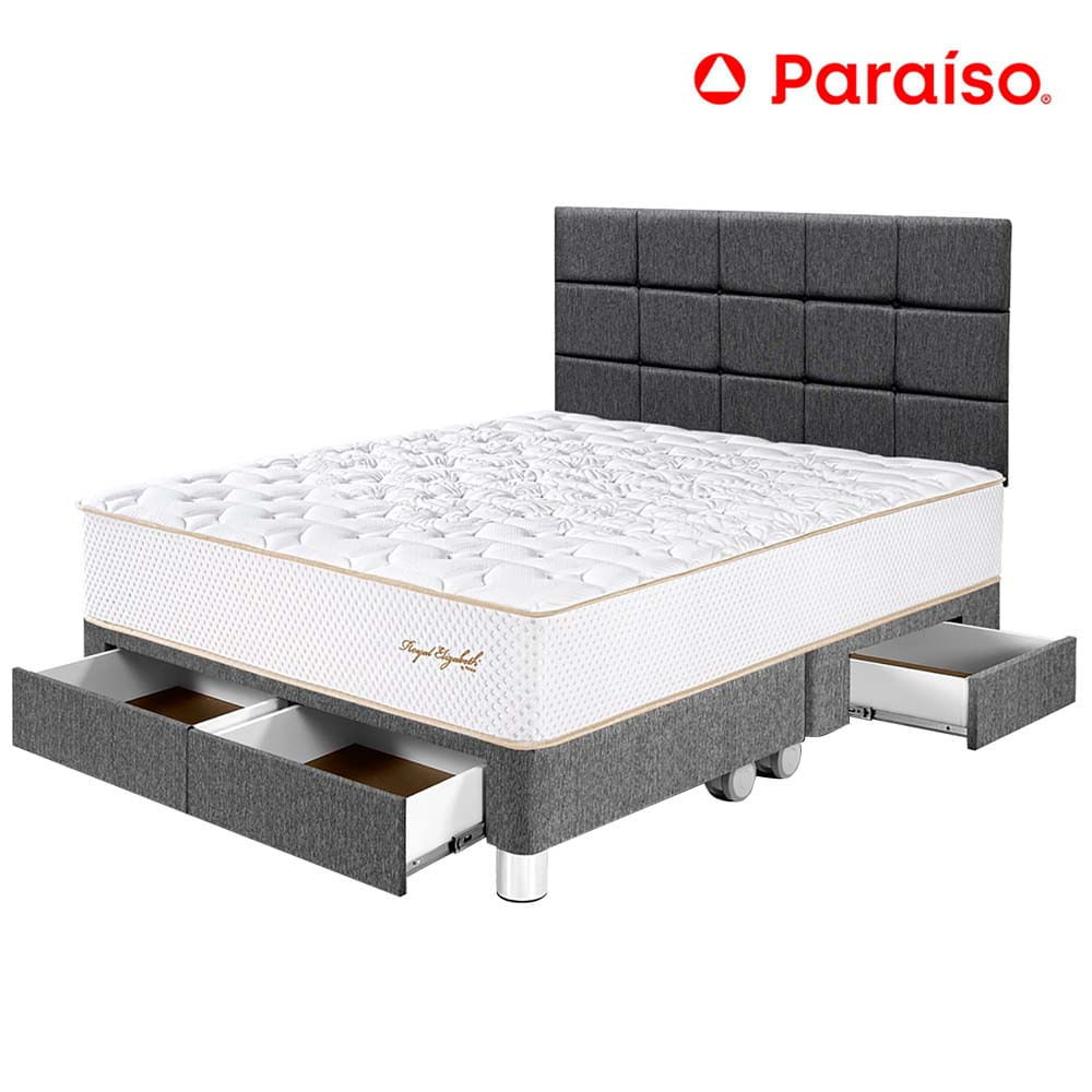Dormitorio PARAISO Royal Elizabeth C/Cajones Queen + Cabecera Blocks Gris + 2 Almohadas + 1 Protector