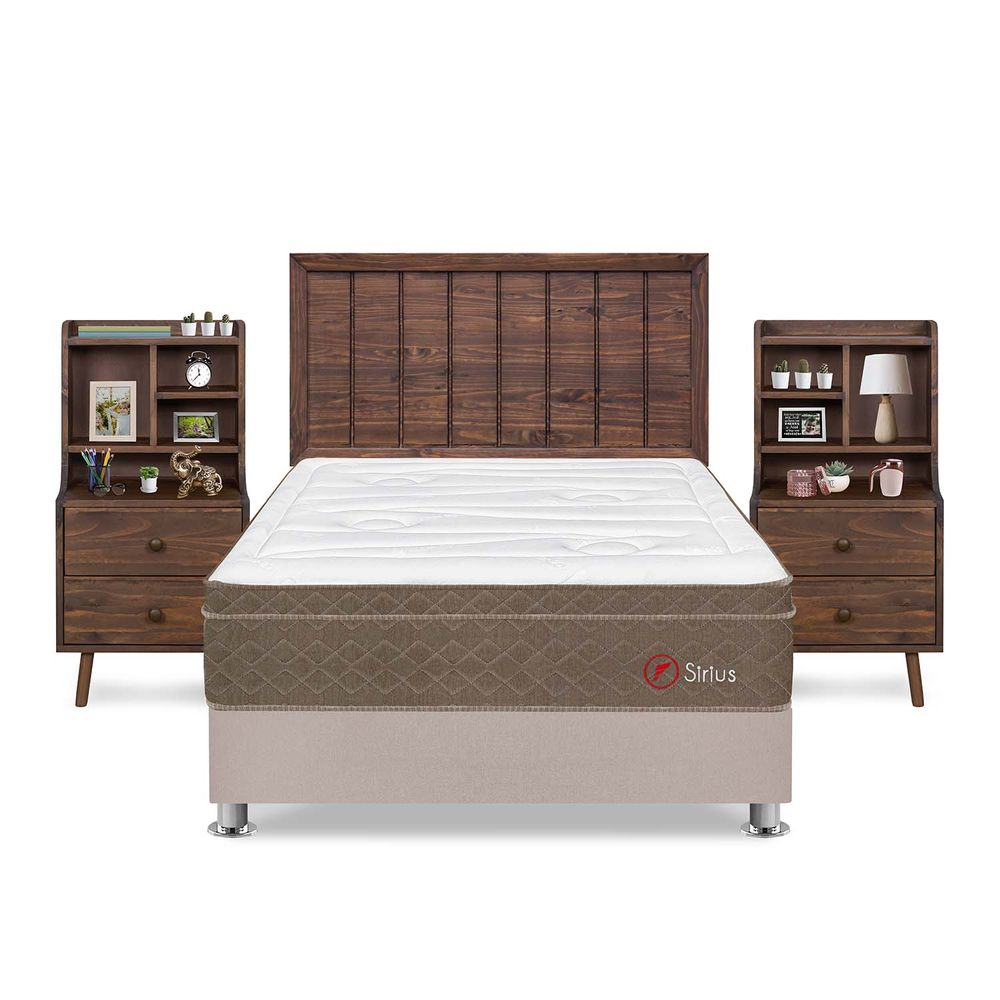 Dormitorio Sirius 2 Plazas Beige + Velador Fashion + Cabecera Catania Nogal