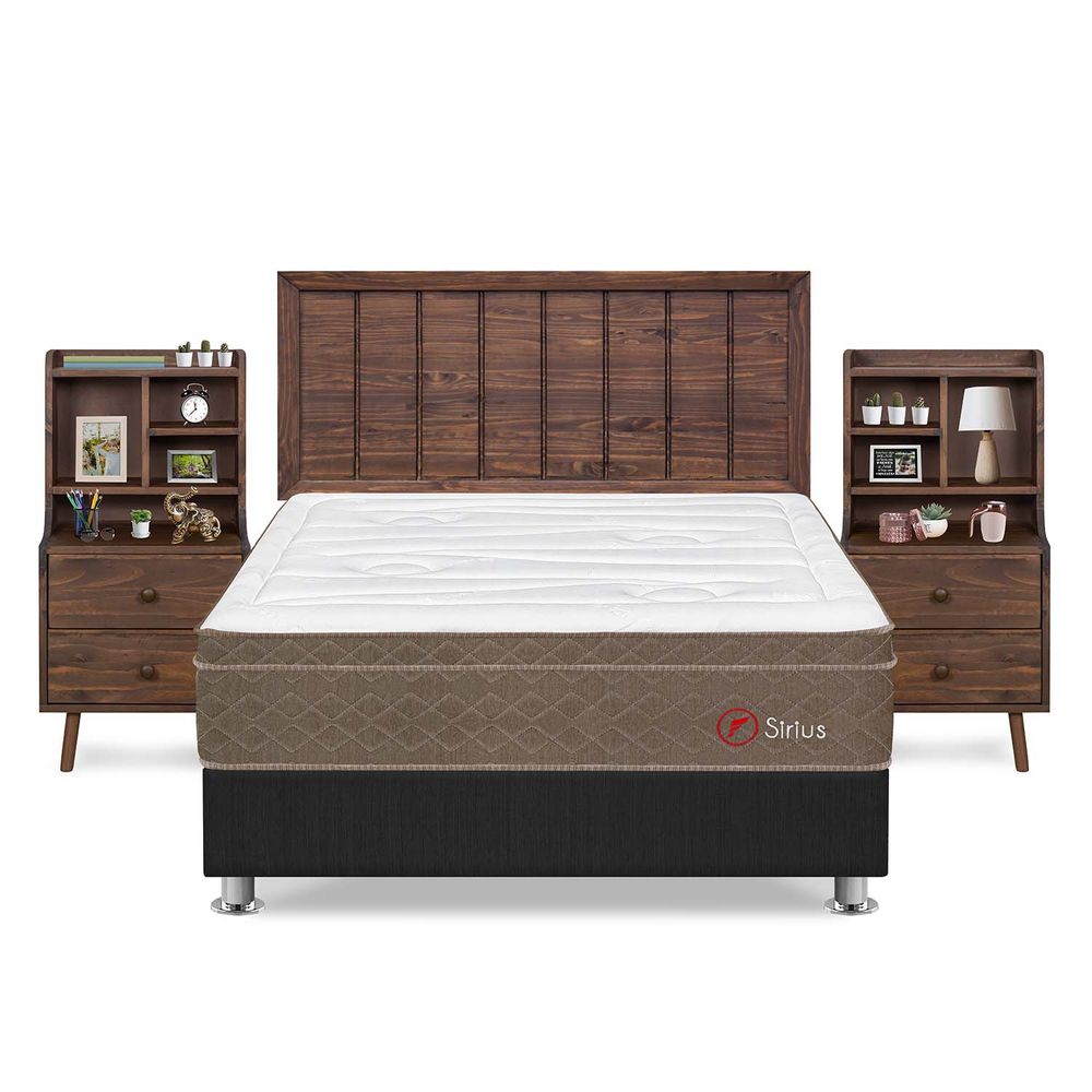 Dormitorio Sirius Queen Gris + Velador Fashion + Cabecera Catania Nogal