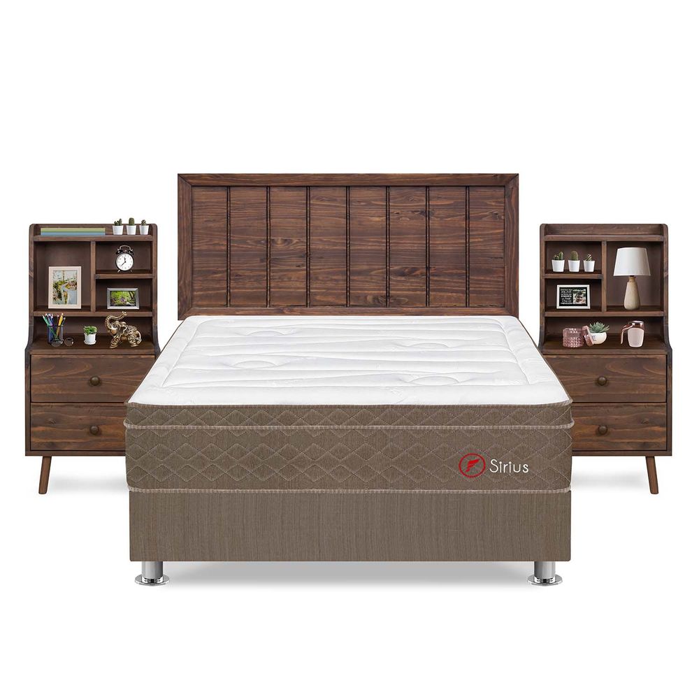 Dormitorio Sirius Queen Marron + Velador Fashion + Cabecera Catania Nogal