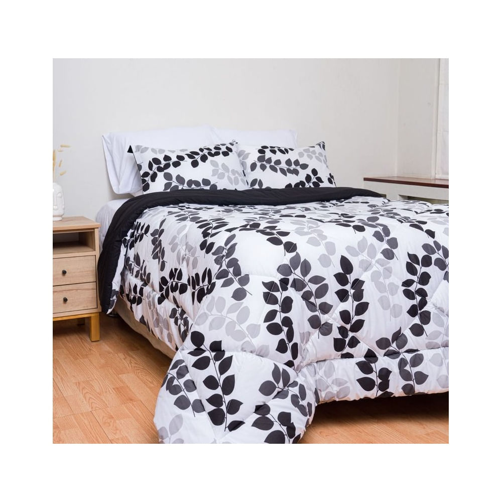 Edredón Deluxe Leaf 2 PLAZAS Negro