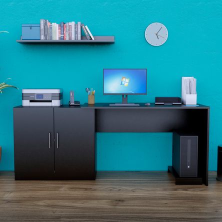 Escritorio con Repisa y Porta CPU Clara 188cm 2 Puertas Movenda Negro