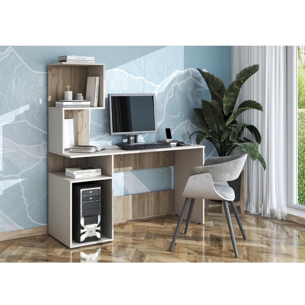 ESCRITORIO LONDEN CON ESTANTES Y PORTA CPU DUNA Y BLANCO 136CM
