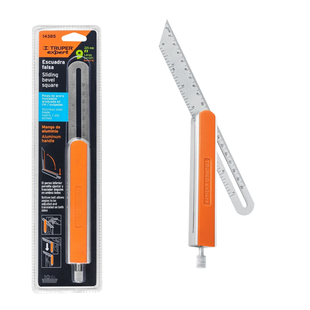 Escuadra Falsa Profesional de 9? (23 cm) con regla Truper Expert EFT-9X 14385