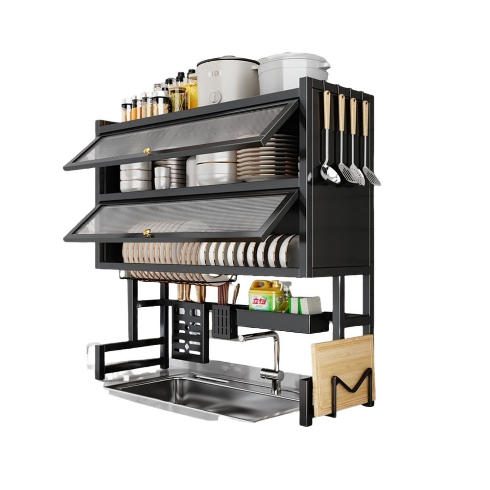 Escurridor con Tapa Acrilica 3 Niveles Organizador de Acero Inoxidable