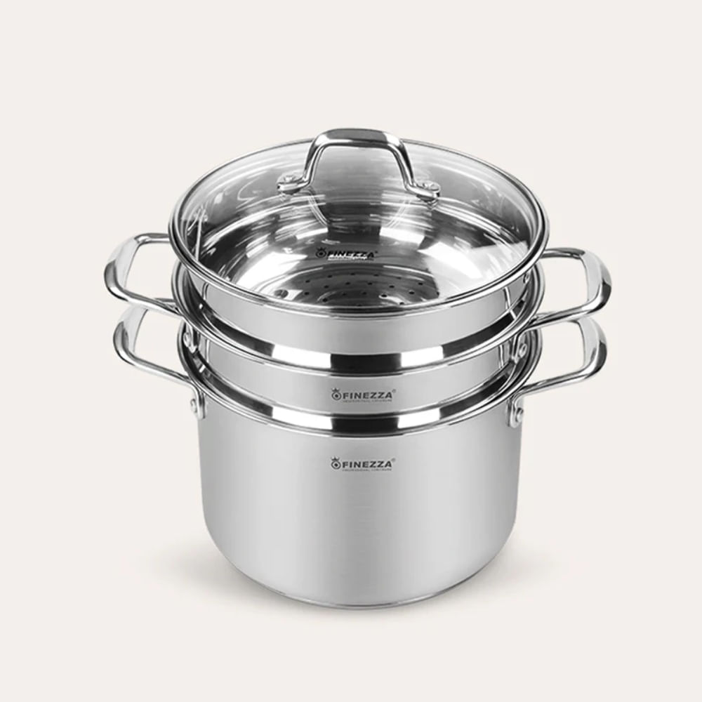 Espaguetera de Acero Inoxidable 4 Piezas con Vaporera y Tapa de Vidrio (FZ-0062SP)