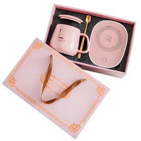 Tazas Calentadoras con Cucharita Electrico 300ml Moderno Rosa