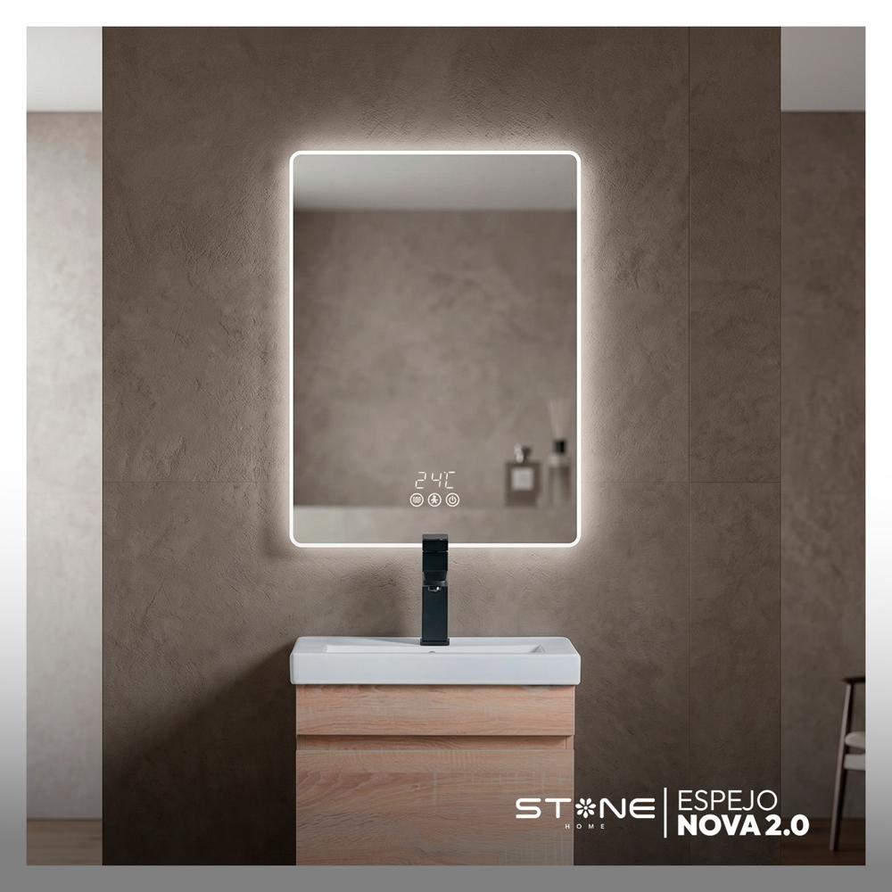Espejo Redondo Led Táctil Nova 70X50CM cm Stone (Con reloj y sensor)