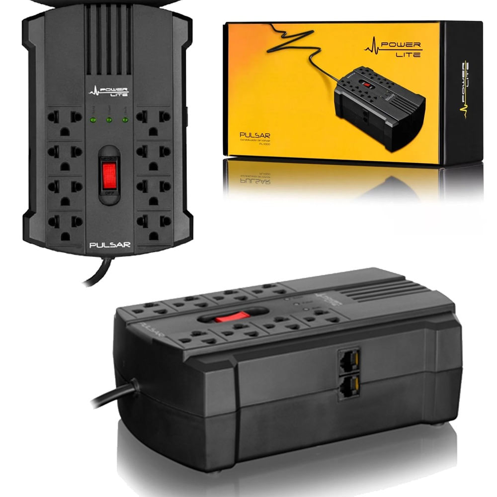 Estabilizador de Voltaje Power Lite Pulsar PLI 1000 8 Tomas Filtro Red