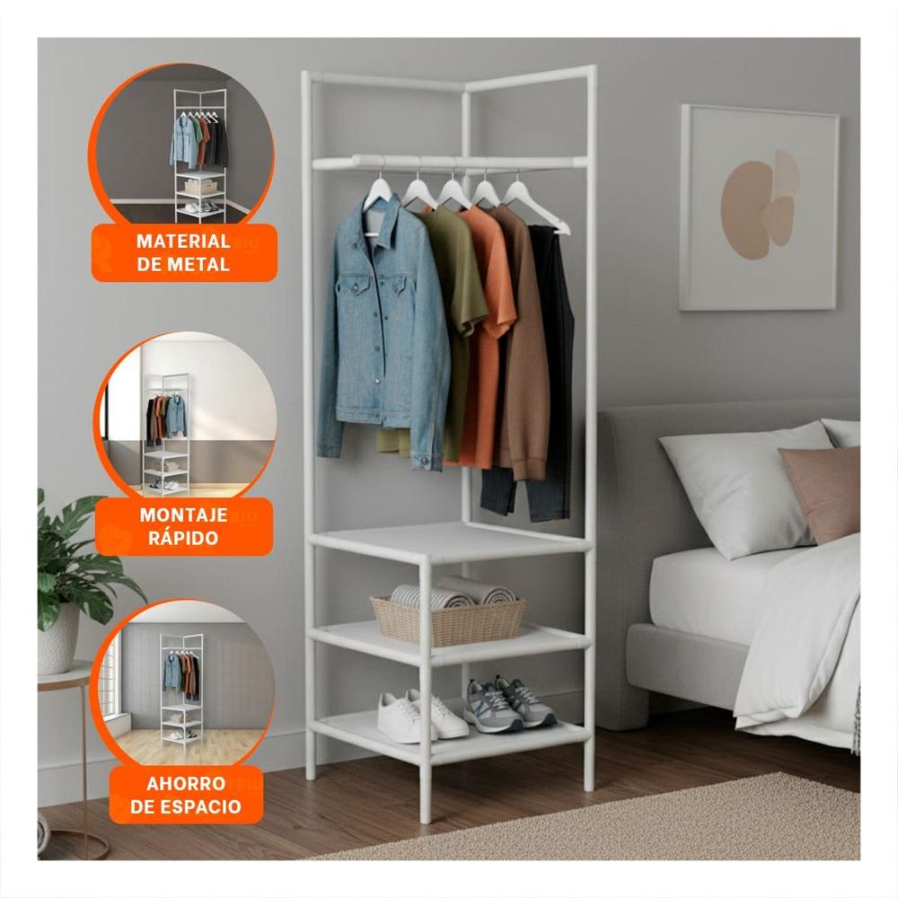 Estructura de Esquina con Perchera y Repisas para Calzado Diario Y+Post It
