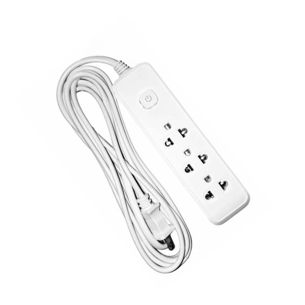 Extensión tomacorriente 3 metros Ignífuga 3 tomas + 1 lateral Blanco