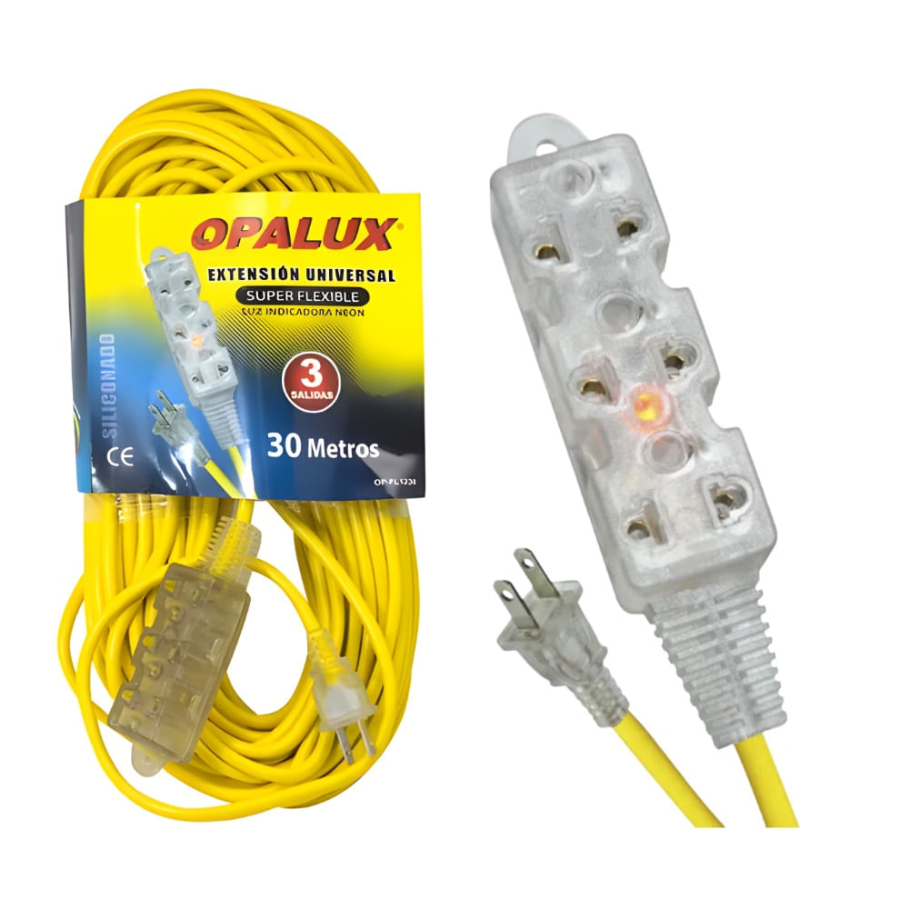 Extension Universal Siliconada de 30 Metros 3 Tomas Opalux Op-FL1230