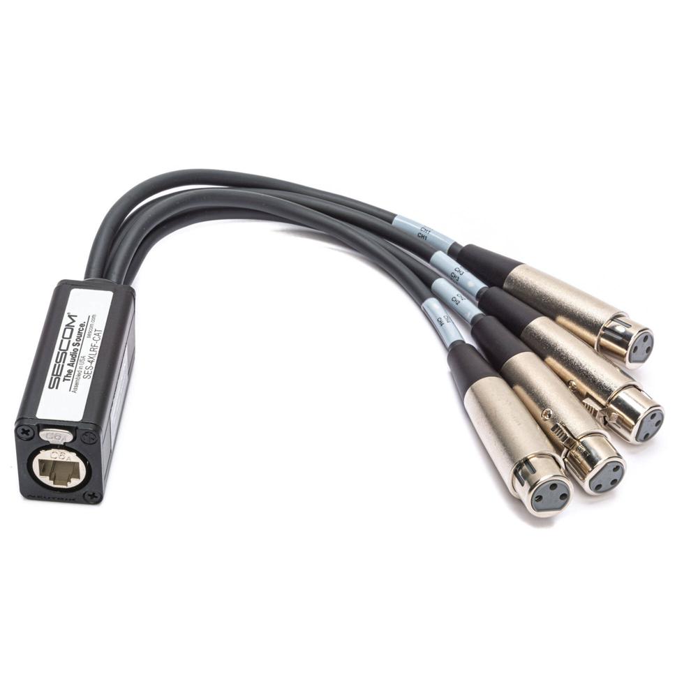 Extensor de Audio Pasivo Sescom 4-Ch Hembras XLR 3 Pines sobre Cable Cat 5/6/7 - Reemplaza Snakes de