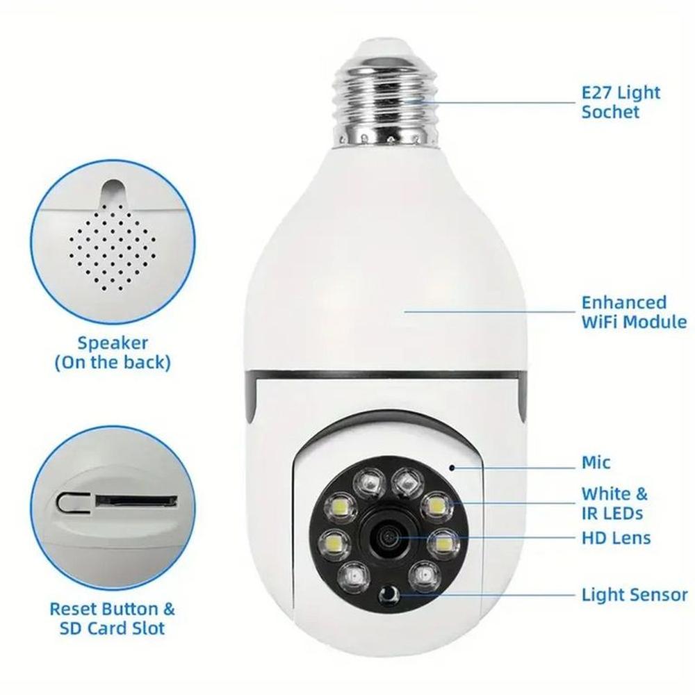 Foco Cámara Vigilancia E27 5G Visión Nocturna Zoom Digital 4X Navidad Genieka