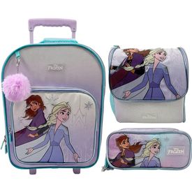 Set Mochila De Ruedas + Lonchera + Cartuchera Medium Disney Frozen
