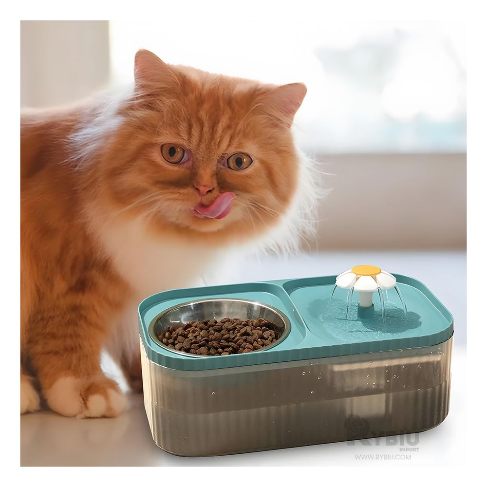 Fuente para Mascotas Doble Comida y Agua Rectangular Celeste