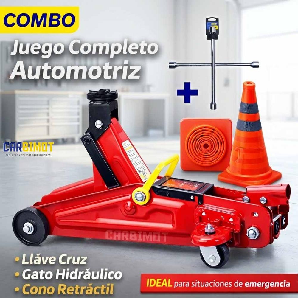 GATA HIDRAULICA LAGARTO CON LLAVE DE RUEDAS Y CONO RETRACTIL