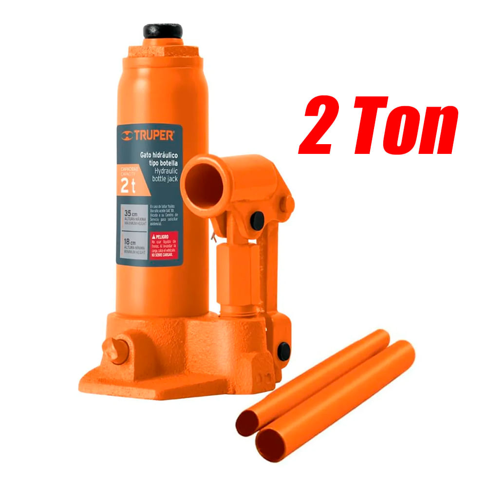 Gata Hidraulica Tipo Botella Truper 14810 2 Toneladas Base Hierro Nodular