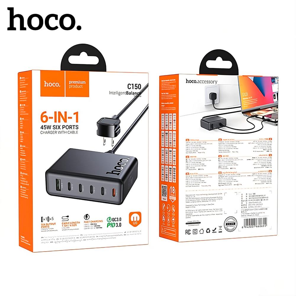 Hoco C150 Cargador Celular Laptop 6 En 1 45w Usb A Usb C