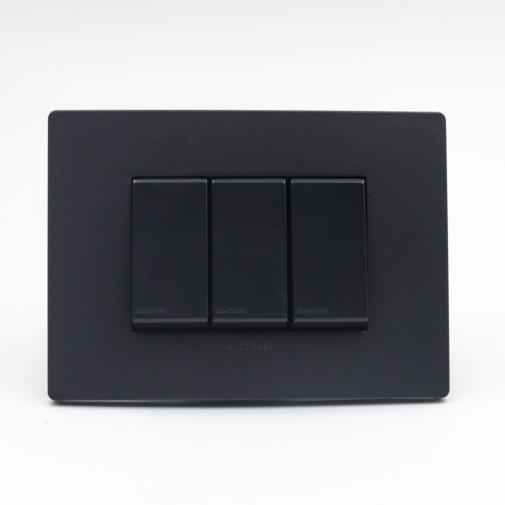 INTERRUPTOR TRIPLE 2 SIMPLE Y 1 CONMUTADOR 3 VIAS SINTHESI S33 PLACA CARBON Y DADOS NOIR