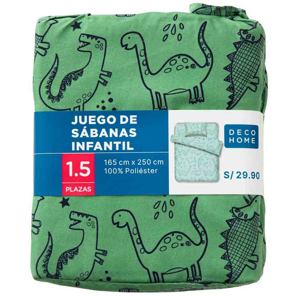 Juego Sábanas Infantil Dinoland 1.5 Plazas Verde DECO HOME