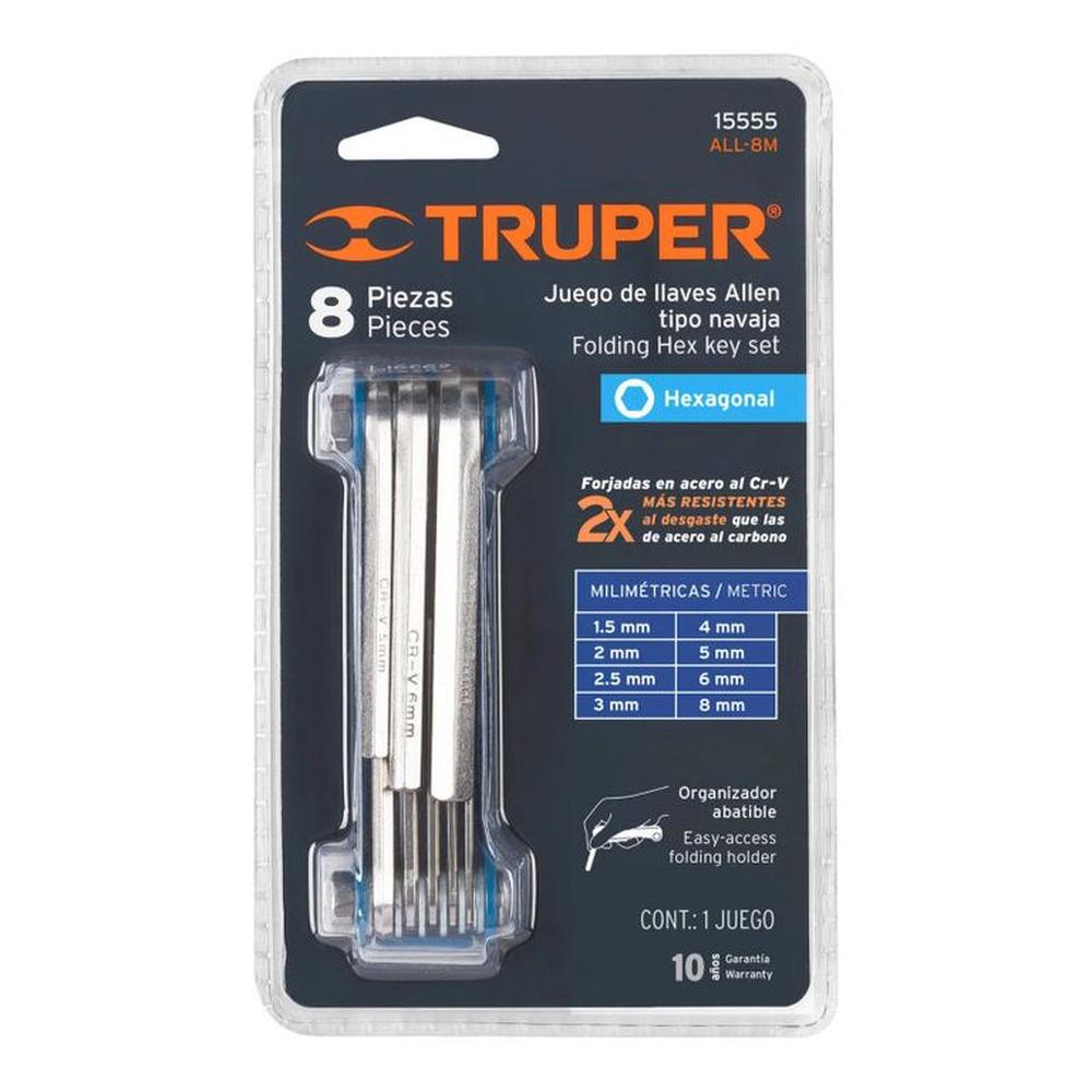 Juego de 8 llaves allen mm tipo navaja cuerpo de lámina Truper - 15555 Gris