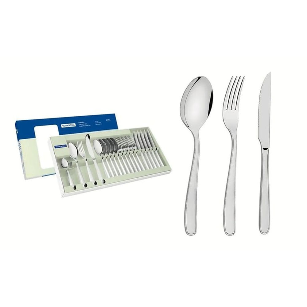 Juego de Cubiertos Tramontina 24 Piezas 100% Acero Inoxidable Faqueiro