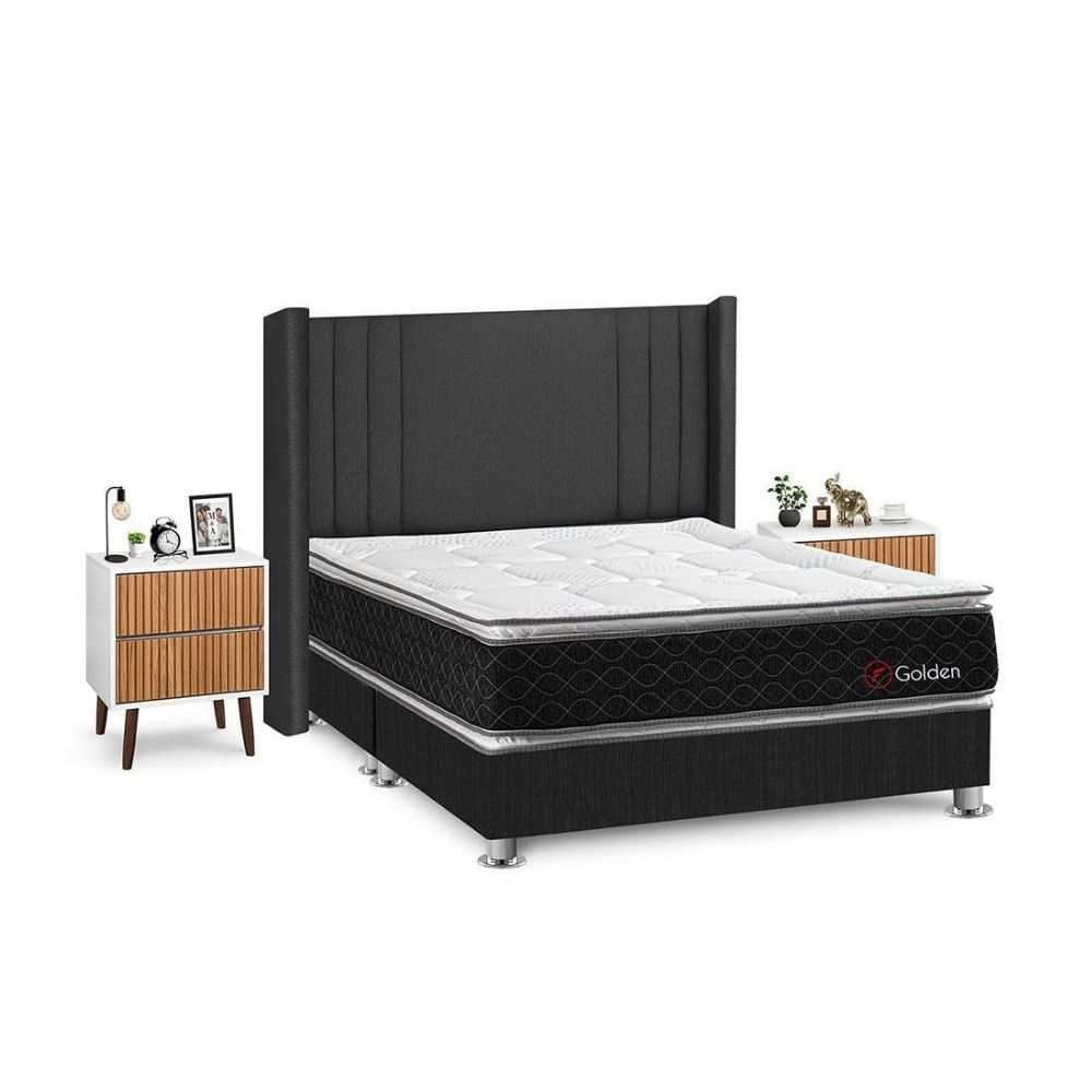 Juego de Dormitorio Forli Golden King Gris + Velador Milan