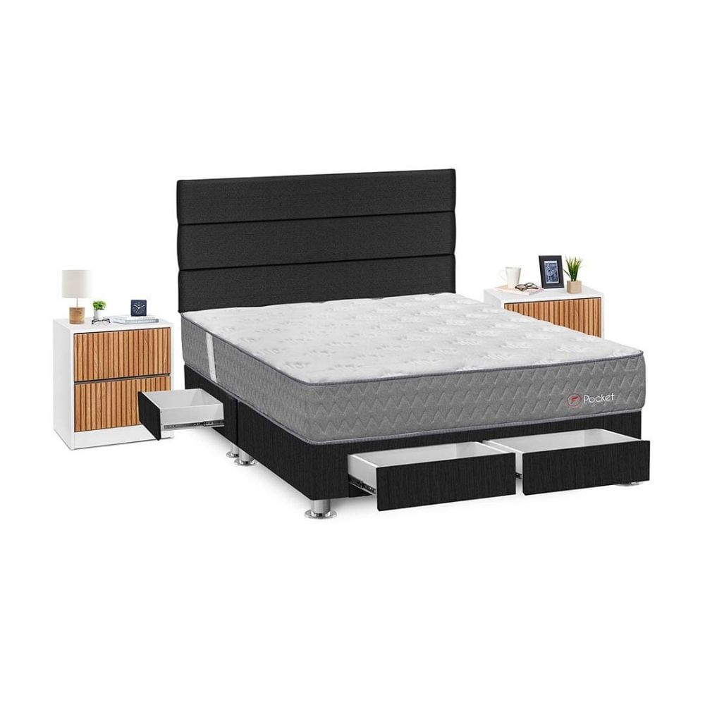 Juego de Dormitorio Forli Pocket 4 Cajones Queen Gris + Velador Roma