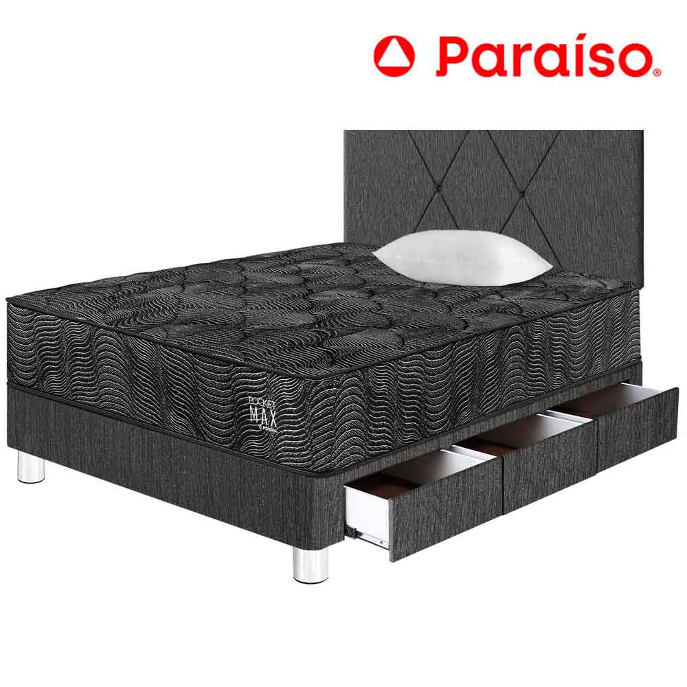 Juego de Dormitorio PARAISO Pocket Max Black C/Caj 1.5 Plazas + 1 Almohada + Protector