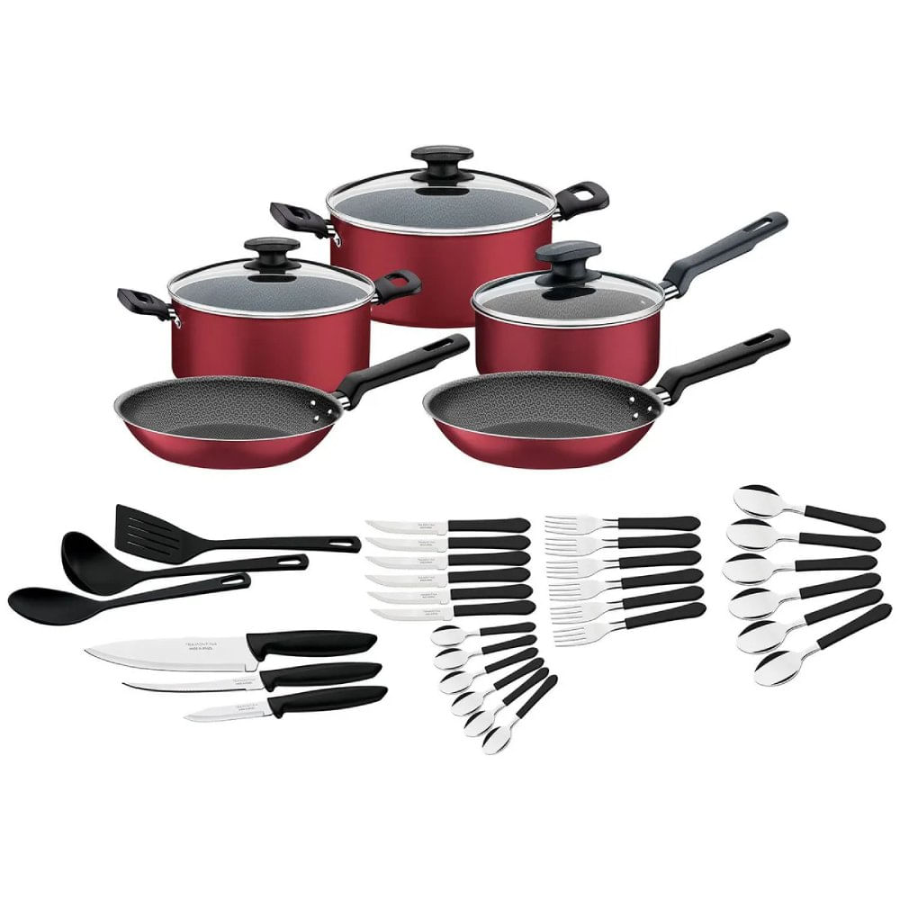 Juego de Ollas 38 Piezas Antiadherente Victoria Tramontina Rojo