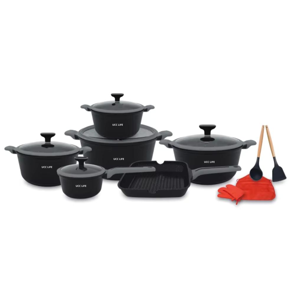 Juego de Ollas con Revestimiento de Granito - 16 Piezas Color Negro