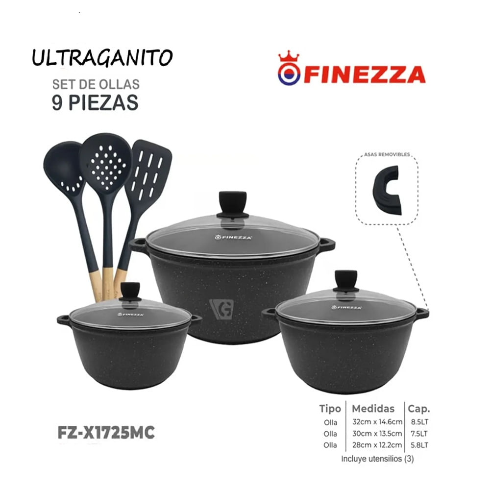 Juego de Ollas Finezza Ultra granito FZ-X1725MC de 9 Pzs